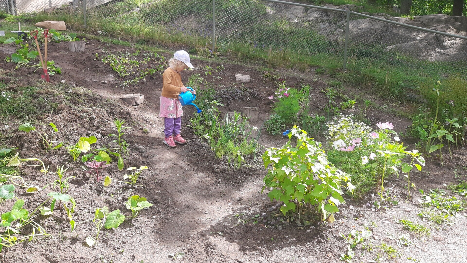 Tack för att jag fick förtroendet att anlägga den här trädgården tillsammans med Er! Det har verkligen varit så himla roligt. Barnen har under arbetets gång livligt berättat om sina trädgårdsland och djur hemmavid. Trädgården har verkligen varit ett kit som stärkt och fört samman barnen på så många sätt. De har hjälpt varandra, turats om, hämtat vatten åt varandra och räknat maskar. Och ärligt talat har jag nog aldrig sett en jord med så mycket mask!