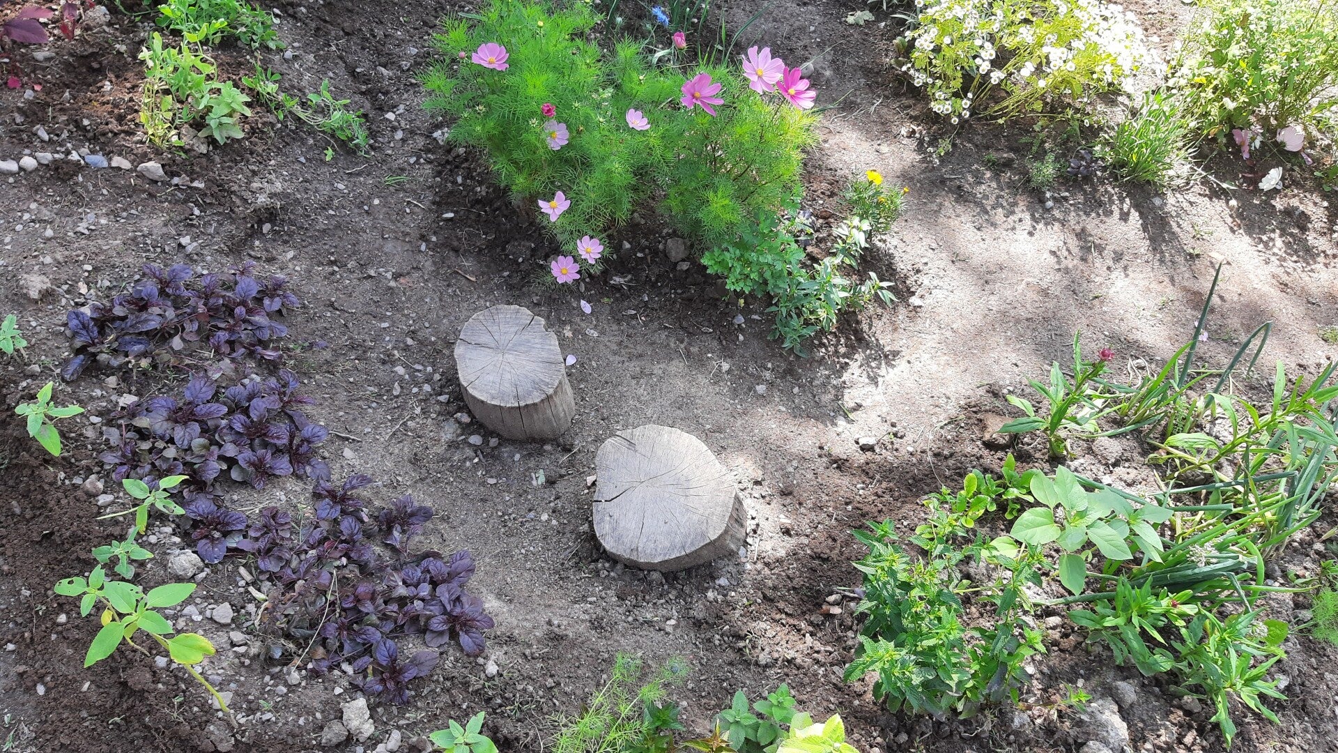 Allt eftersom vi tog bort gräset planterade vi direkt. Mycket rödbetor, blommor och ätbara perenner blev det.